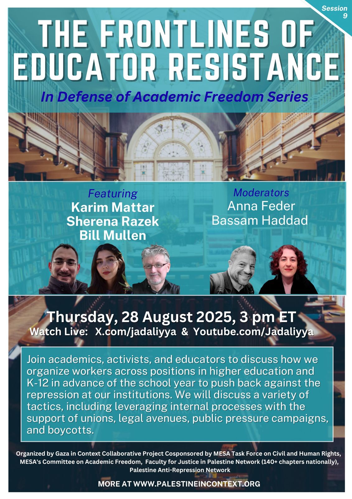 Organized by DC, Maryland, & Virginia Faculty for Academic Freedom and Gaza in Conrtext Collaborative Project; Cosponsored by MESA Task Force on Civil and Human Rights, MESA's Committee on Academic Freedom, Faculty for Justice in Palestine Network (115+ chapters nationally)