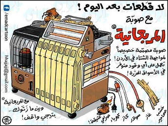 Eric Verdiel: You ask us to think, speak, and share some of the ways this notion of energy justice or injustice is experienced in the Arab world. I thought the cartoons by Emad Hajjaj, a Jordanian journalist and cartoonist, would be very interesting to illustrate some of these experiences.