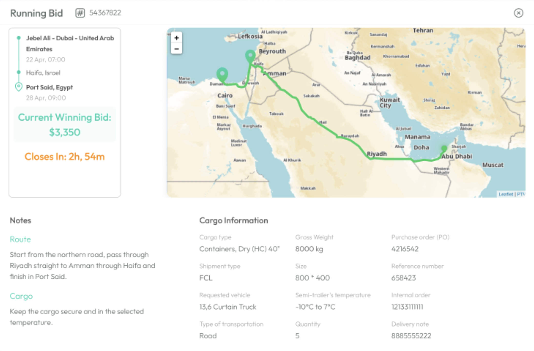 [22] https://trucknet.io/premier-middle-east-transportation-route/. The website provides what looks like live data: time of departure of a truck in Jebel Ali, estimated time of arrival at Haifa, temperature of the cooled container, ride number, etc.).